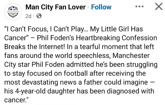 10月30日讯 据《太阳报》报说念,近期相聚上出现谣言称福登的一个孩子离世,另一个孩子患癌,福登还是遴聘了讼师措置此事。 据报说念,福登遴聘了大批法律众人,试图从多个社媒平台上删除这些作假的新闻和图片。 据悉第一条谣言出咫尺Facebook上,作假地宣称福登的大女儿、6岁的鲁尼还是离世。而别称网名为“曼城球迷严防者”的驳诘者还发帖,称福登4岁的女儿患有癌症。