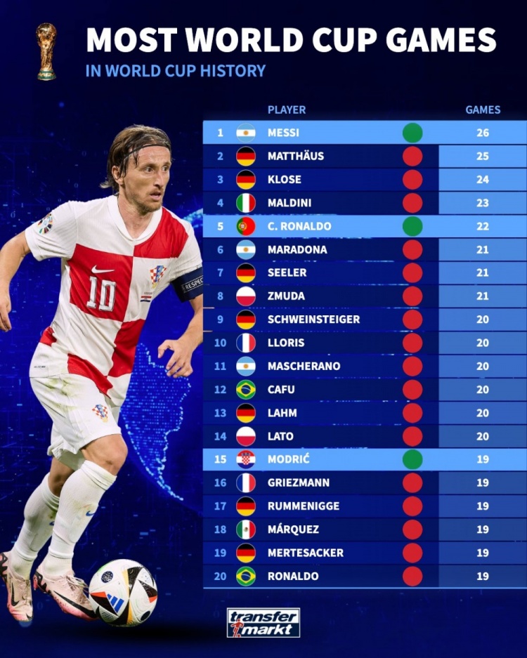 11月15日讯 克罗地亚赢得寰宇杯参赛资历,莫德里奇将迎来第5届寰宇杯,德国转会市集统计了球员谢寰宇杯的出场次数,并排出榜单,梅西26场居首,C罗22场、莫德里奇19场。 寰宇杯出场次数排行: 梅西(阿根廷)——26 马特乌斯(德国)——25 克洛泽(德国)——24 马尔蒂尼(意大利)——23 C罗(葡萄牙)——22 马拉多纳(阿根廷)——21 塞勒(德国)——21 兹穆达(波兰)——21 施魏因斯泰格(德国)——20 洛里(法国)——20 马斯切拉诺(阿根廷)——20 卡福(巴西)——20 拉姆(德国)——20 拉托(波兰)——20 莫德里奇(克罗地亚)——19 格列兹曼(法国)——19 鲁梅尼格(德国)——19 马克斯(墨西哥)——19 默特萨克(德国)——19 罗纳尔多(巴西)——19 |
