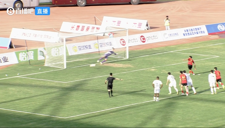 04月26日讯 中甲第6轮,长春亚泰vs广东广州豹。第45+3分钟,奥莫伊胡安弗十二码球破门,亚泰1-1扳平广州豹。