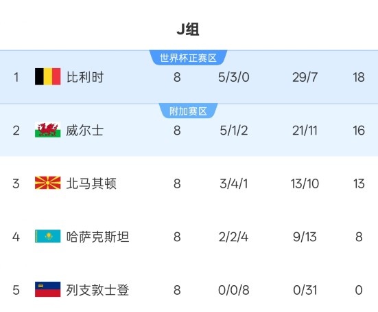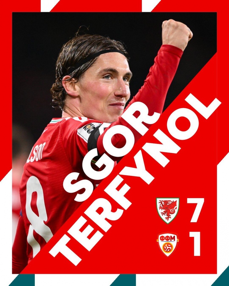 11月19日讯 世初赛欧洲区小组赛J组临了一轮,威尔士7-1驯顺北马其顿。 本场比赛,威尔士上半场凭借哈里·威尔逊、布鲁克斯和约翰逊的进球3-1杰出北马其顿,为北马其顿破门的是米诺夫斯基。 下半场丹尼尔·约翰逊和布劳德海德立功,哈里·威尔逊双响,本场献技帽子戏法。 最终,威尔士7-1北马其顿,顺利在积分上反超敌手,积16分位列小组第二,将树立附加赛。 本组头名为积18分的比利时,欧洲红魔将纵贯宇宙杯。