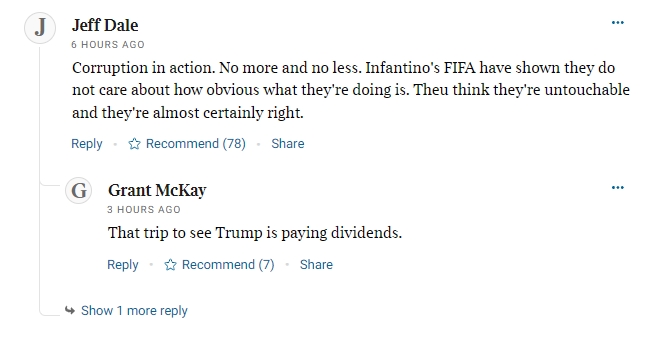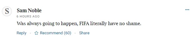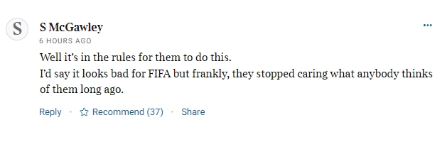 球迷3:这种事即是一直会发生,FIFA照旧毫无廉耻了。