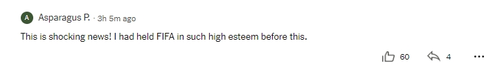 TA对此事的报说念辩论区 球迷6:太战栗了!在此之前我蓝本还把FIFA看得挺高的。