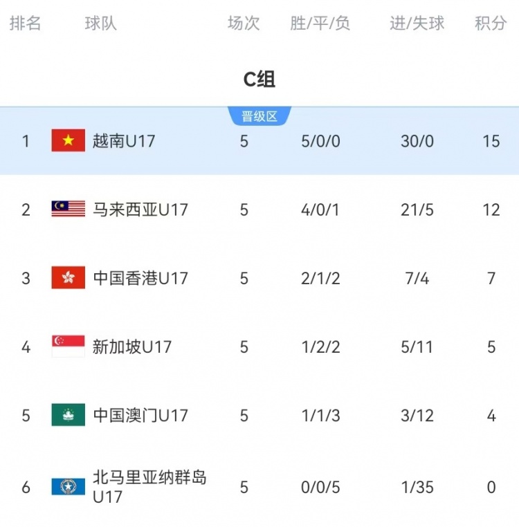 越南镇守主场,小组同组敌手多数较弱,他们在临了一轮4-0打败了最大竞争敌手马来西亚,5战全胜,打进30球失0球,可谓舍弃晋级。