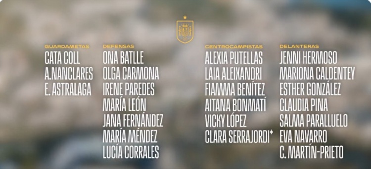 10月18日讯 西班牙女足将在欧国联半决赛中对阵瑞典女足,西班牙足协公布了本期女足国度队的名单,埃尔莫索追念。 西班牙女足新一期名单 门将 卡塔-科尔 A-曼格拉雷斯 E-阿斯特拉加 后卫 奥尼亚-巴特列 奥尔加-卡尔莫纳 伊雷内-帕雷德斯 玛丽亚-莱昂 哈娜-费尔南德斯 玛丽亚-门德斯 露西亚-科拉莱斯 中场 普特拉斯 莱娅-亚历杭德里 菲亚玛-贝尼特斯 邦马蒂 维基-洛佩斯 克拉拉-塞拉约迪(补招) 前卫 珍妮-埃尔莫索 马里奥娜-卡尔登泰 埃斯特-冈萨雷斯 克劳迪娅-皮娜 帕拉卢埃洛 埃娃-纳瓦罗 马丁-普列托 |