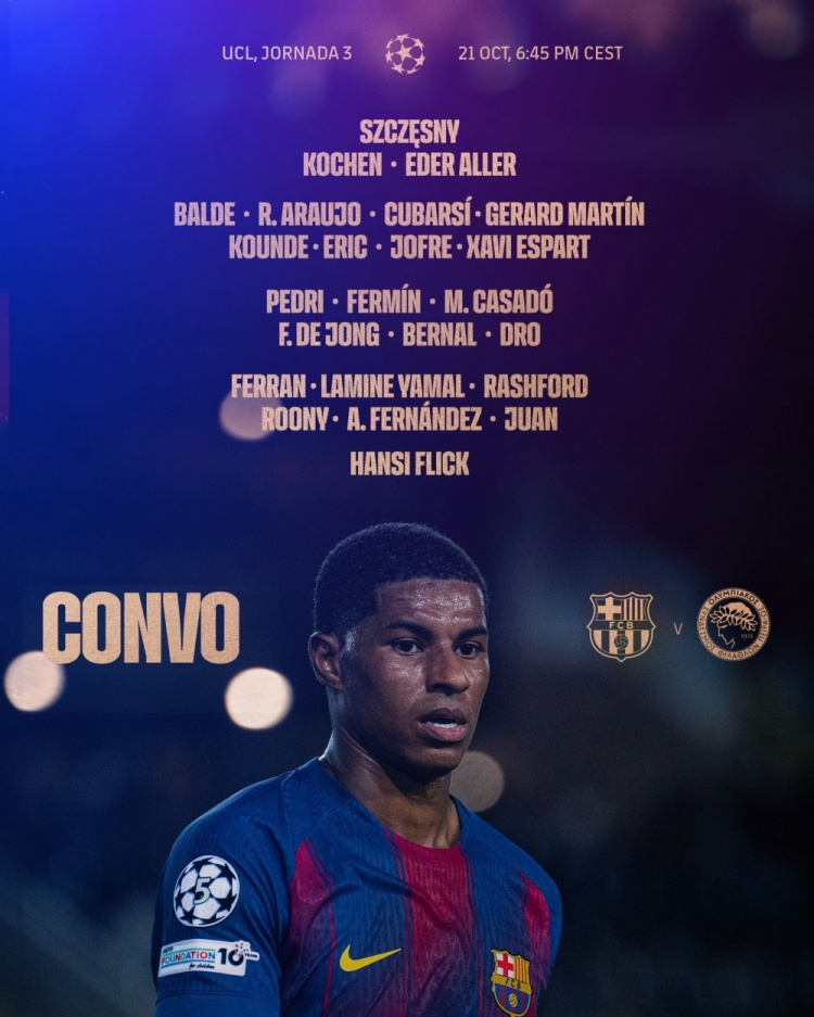 10月21日讯 北京本领翌日凌晨,巴萨将在欧冠联赛阶段第三轮比赛中主场对阵奥林匹亚科斯,巴萨公布了此役的球员名单。费兰-托雷斯转头,克里斯滕森、莱万、拉菲尼亚、奥尔莫、霍安-加西亚、加维缺席。 巴萨本轮欧冠大名单 门将:什琴斯尼、科亨、埃德-阿勒 后卫:巴尔德、阿劳霍、库巴西、马丁、孔德、埃里克-加西亚、托伦茨、埃斯帕特 中场:佩德里、费尔明、卡萨多、德容、伯纳尔、德罗 前卫:费兰-托雷斯、亚马尔、拉什福德、巴德吉、托尼-费尔南德斯、胡安-埃尔南德斯 |